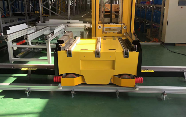 It combines the functions of a stacker crane and an RGV (Robotics-Guided Vehicle),