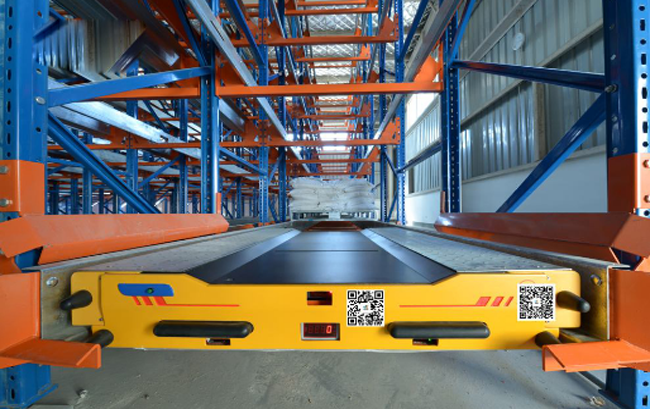 The shuttle car can be configured with single/double-depth options and equipped with clamp-style